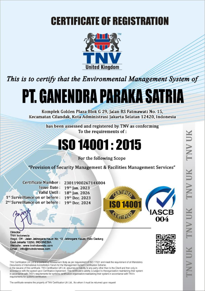 Pada awalnya, PT Ganendra Paraka Satria didirikan untuk mendukung layanan alihdaya tenaga pengamanan yang disediakan oleh Nawakara Group. Layanan yang diberikan adalah untuk kategori klien ritel. Pada perkembangannya, Ganendra diarahkan untuk menangani layanan alihdaya untuk fasilitas bangunan (building facility) dan pendukung layanan korporasi (corporate support). Bentuk layanan yang diberikan untuk fasilitas bangunan adalah layanan pembersih (cleaning service), layanan pembersihan menyeluruh (general cleaning service), pemeliharaan infrastruktur (infrastructure maintenance) dan pengendali rayap/serangga/tikus (pest management). Penyediaan tenaga alihdaya pendukung kegiatan korporasi meliputi jenis pekerjaan resepsionis, supir, tenaga penjual, teknisi, operator, dan pesuruh kantor. Pada tahun 2018, PT Ganendra Paraka Satria melakukan pembaharuan arah bisnis, disertai dengan berubahnya identitas korporasi sebagai cermin pembaharuan ini. Tagline untuk identitas korporasi ini adalah Ganendra Solutions.